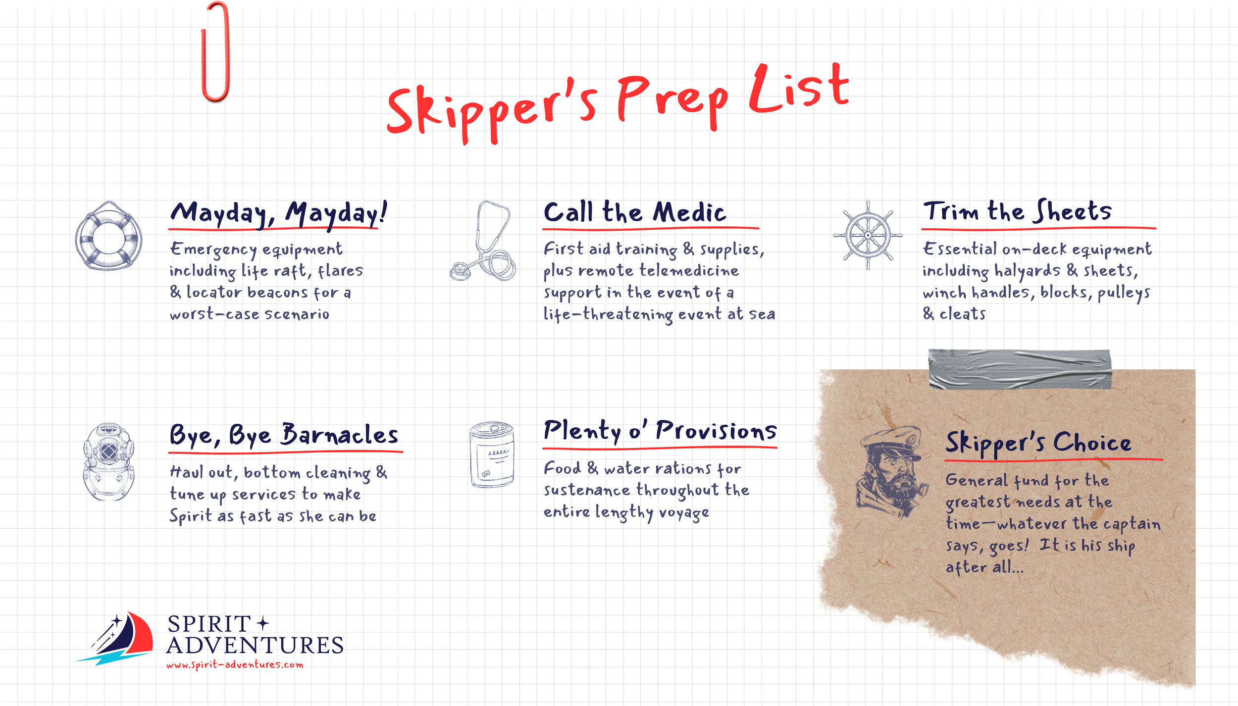 The Skipperβs Prep List outlines how your contribution will directly make a difference.